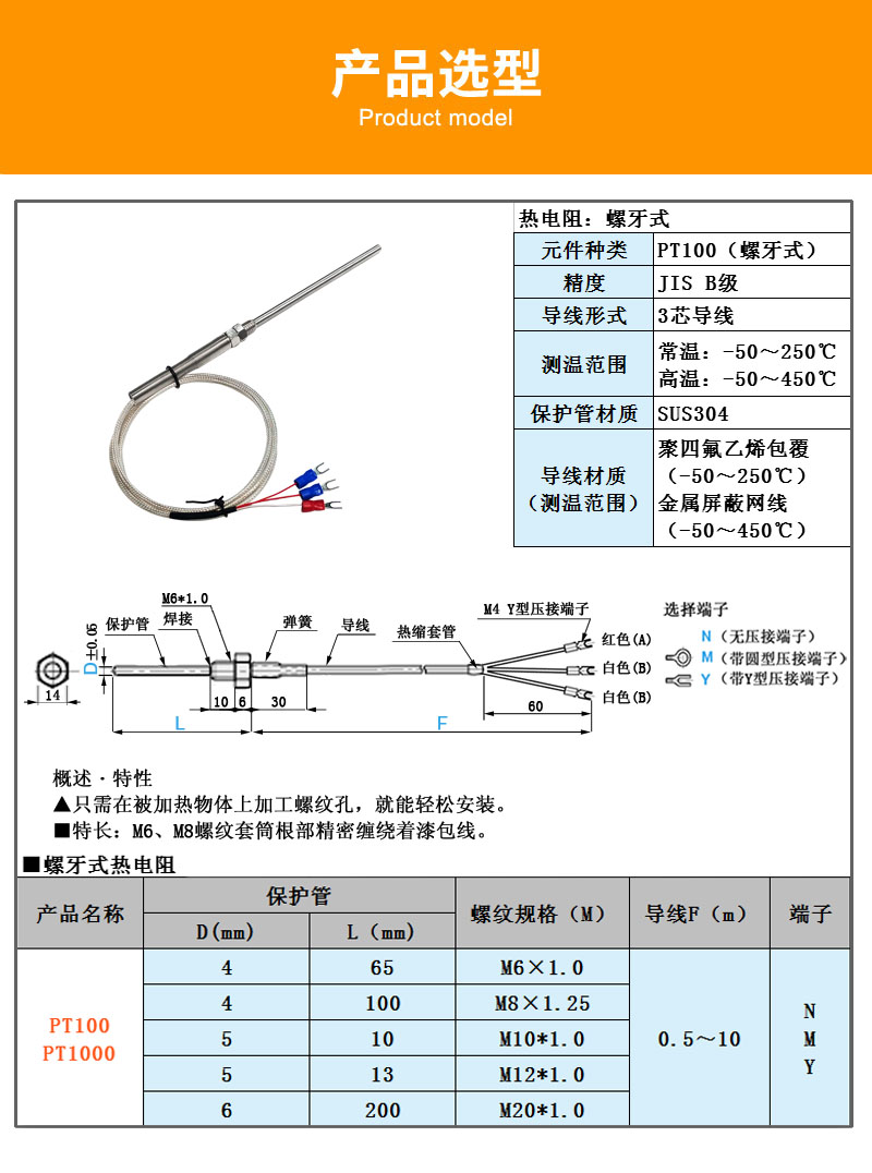 螺牙式PT100熱電阻特點: