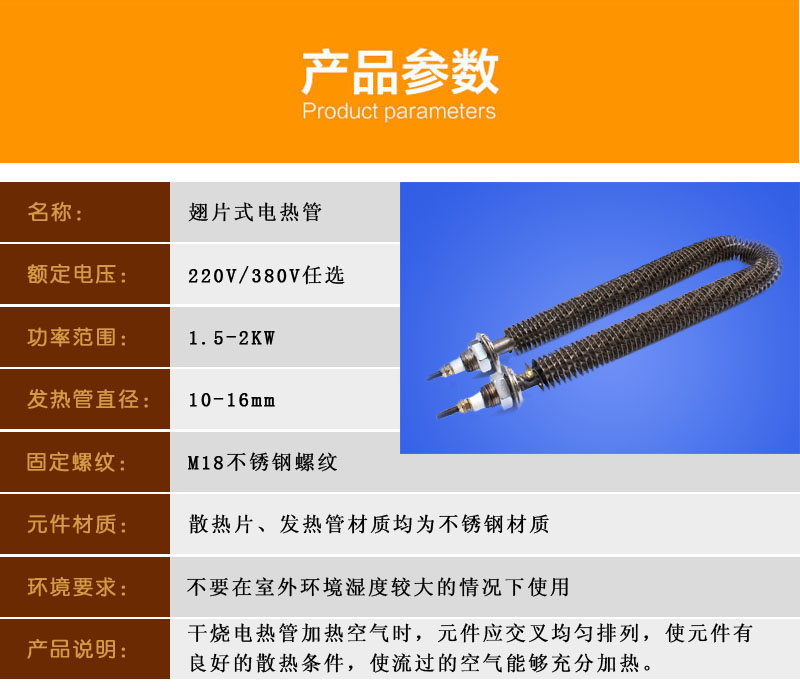 翅片電加熱管適用于烘箱、烘道加熱,一般加熱介質為空氣。